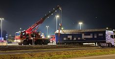 PONTEDERA. Il semirimorchio è rimasto bloccato ed è stato necessario l'impiego dell'autogru per liberare l'area: diversi gli automobilisti incuriositi