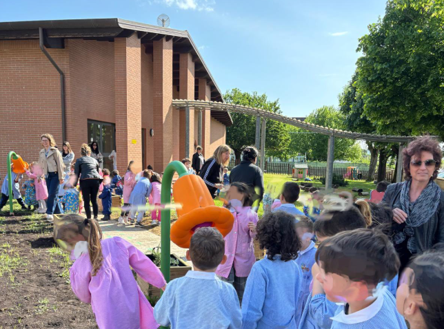 "Un nuovo spazio educativo nel giardino, che si sviluppa in un percorso attrezzato con tavoli e sedute - hanno spiegato dall'amministrazione comunale - arricchito da fioriere, staccionate colorate e giochi inclusivi, tra cui i cosiddetti fiori parlanti".