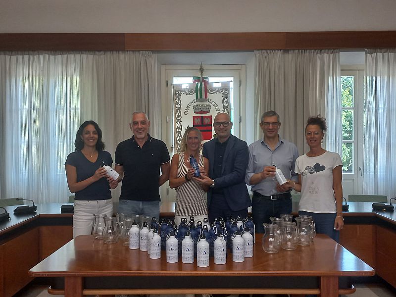 Dopo aver consegnato pochi anni fa 1.400 borracce a tutti gli studenti di tutte le scuole del territorio, il regalo ai 40 lavoratori dell'amministrazione ha riconfermato l'impegno a ridurre il consumo di plastica e a incentivare l'uso dell'acqua dei fontanelli.