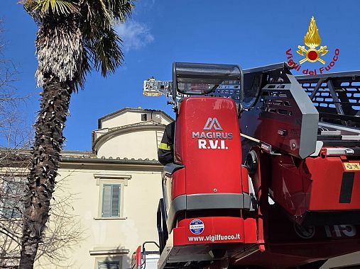 Sul posto sono quindi intervenuti i Vigili del Fuoco, impegnati nelle verifiche sulla stabilità dell'abbazia, anche grazie all'utilizzo dell'autoscala.