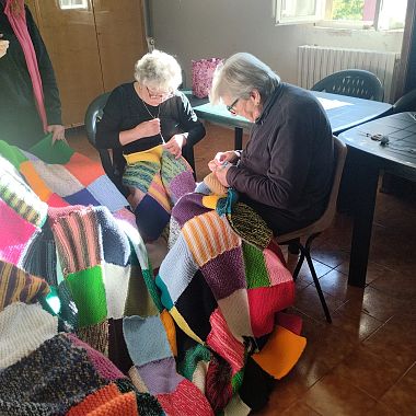 Tra gomitoli e ferri un lavoro certosino che fa comunità, rafforzano i legami anche fuori provincia. Tutto pronto per la maxi calza dei record