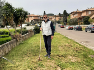 E così, rastrello in mano, il primo cittadino del comune termale dall'estate 2024 si è fatto immortalare mentre, appunto, cura il suo piccolo appezzamento di verde urbano.
