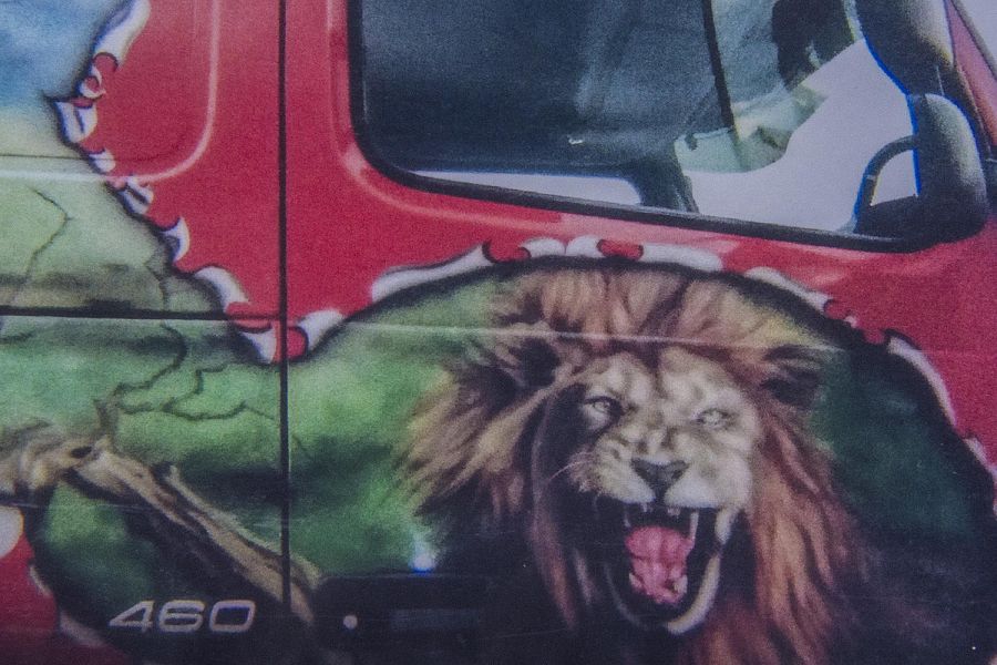 Una piccola macchinetta con colori rigorosamente ad acqua, che nelle mani di Marco non conosce confini. Camion auto, moto, caschi, ma anche cellulari, vestiti o altri piccoli oggetti prendono colore e si trasformano.
