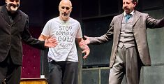 PONTEDERA. L'attore, protagonista dello spettacolo "Il caso Jekyll", durante gli applausi ha mostrato una t-shirt con scritto "Stop bombing Gaza"