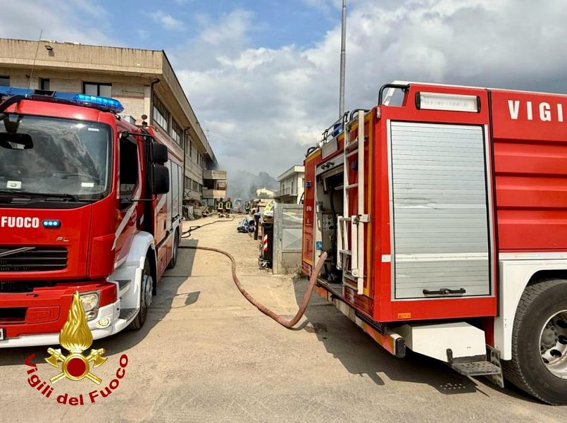 Qui, all'esterno di un capannone, è divampato un incendio che ha interessato anche dei vecchi contatori, distrutti dalle fiamme.