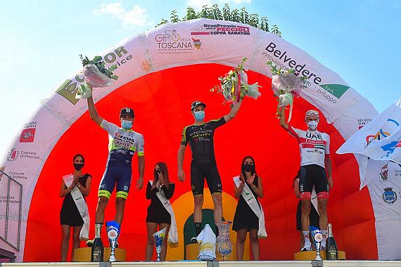 La corsa è finita in volata e con il gruppo compatto, come ieri nel Giro della Toscana (vinto da Gaviria), e come ieri anche oggi il gruppo ha dovuto lavorare per recuperare lo svantaggio accumulato da un gruppo di fuggitivi.