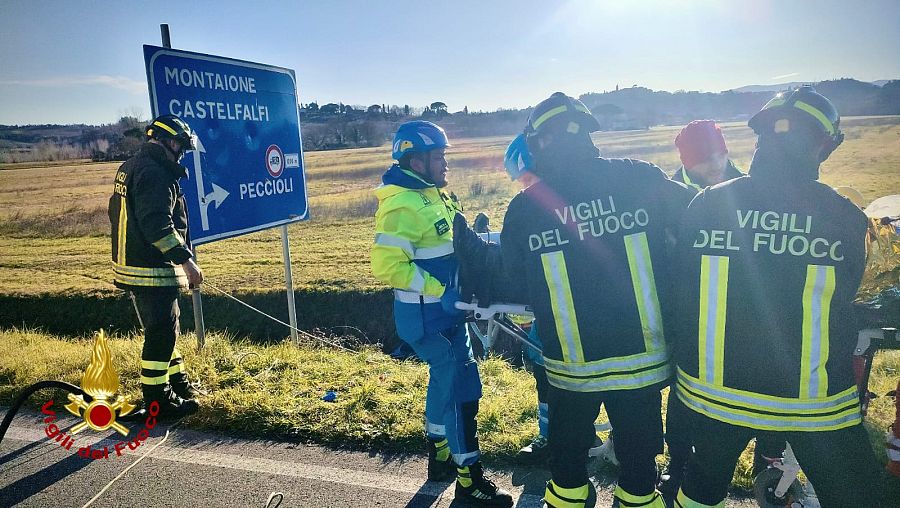 Sul posto, poco dopo le 14 di oggi, mercoledì 7 Gennaio, sono intervenuti i Vigili del fuoco di Pisa, che hanno dovuto tagliare e divaricare le lamiere de mezzo per liberare il guidatore, rimasto incastrato all'interno dell'abitacolo.