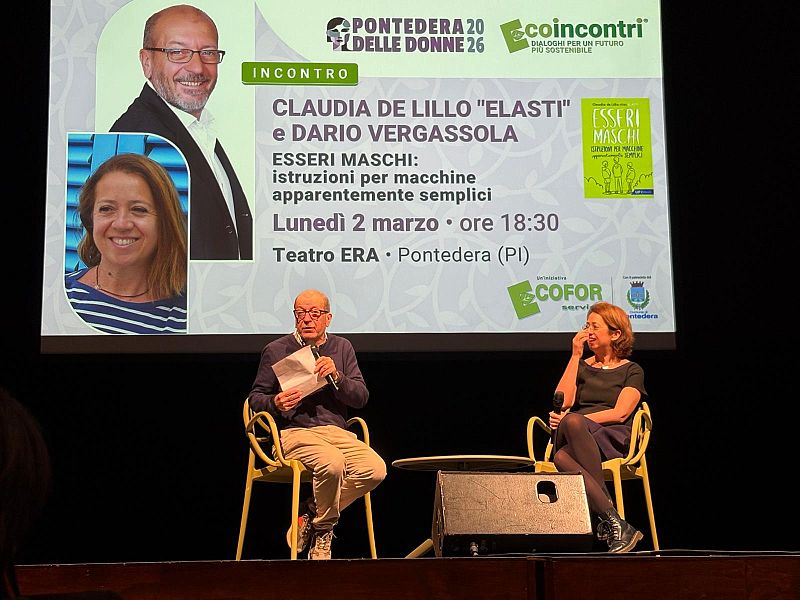 Dopo quello con Jacopo Veneziani e il cambio di location dovuto alla massiccia risposta del pubblico, sul palco del Teatro Era sono saliti l'attore e comico Dario Vergassola e la giornalista Claudia De Lillo, creatrice di "Elasti" e anima del portale Nonsolomamma.
