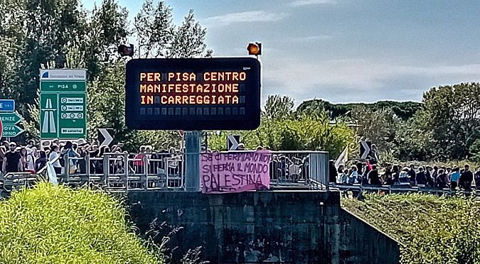 L’azione è arrivata al termine di una mattinata di mobilitazioni che avevano già causato forti disagi in città e nei collegamenti regionali. Prima l’autostrada all’ingresso Pisa-Centro è stata bloccata, con il corteo che successivamente ha percorso l’A12, mentre in parallelo vi era il blocco della superstrada FiPiLi. La manifestazione, dopo il blocco dei treni, si è diretta sull’aeroporto, bersaglio finale della protesta, forzando il blocco e invadendo le piste di atterraggio e partenze dei voli.