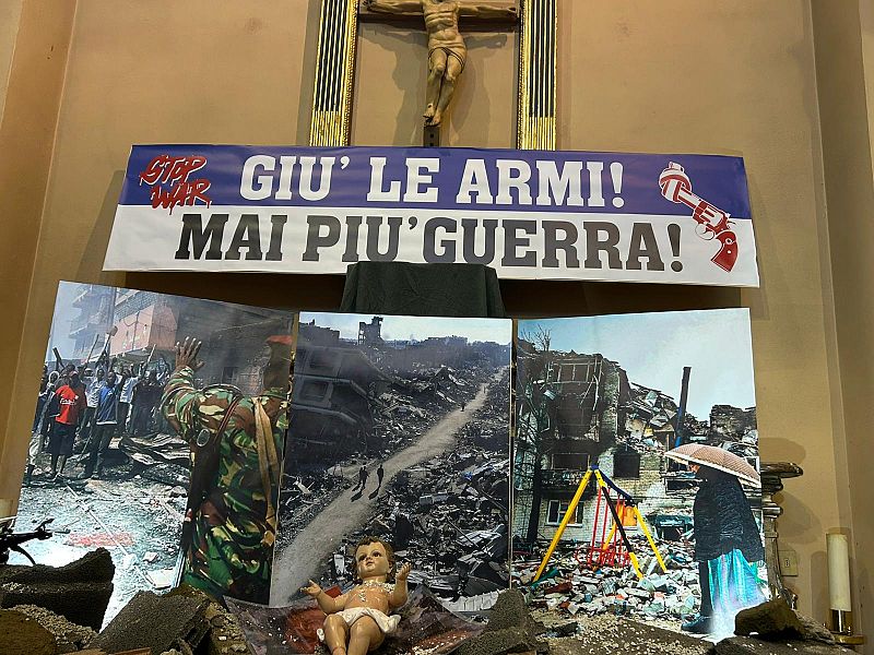 Per questo, a fare da sfondo al presepe, ci sono delle foto che provengono da alcuni dei conflitti che interessano milioni e milioni di persone: da quello di Gaza all'Ucraina, passando per il Sudan. "Di fronte a questo non ci si può voltare dall’altra parte né possiamo restare a guardare - ha aggiunto - l'unica cosa che non dobbiamo disarmare sono le nostre coscienze. Per il resto dobbiamo disarmarci’, disarmare i nostri Paesi, le nostre comunità, le nostre menti, i nostri cuori".