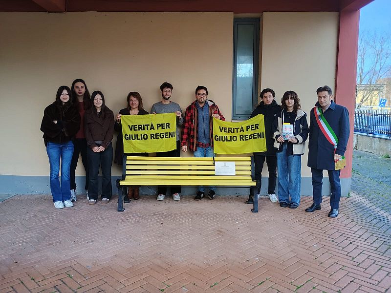 PONTEDERA — A dieci anni dall'uccisione di Giulio Regeni, ricercatore universitario rapito, torturato e assassinato nel Gennaio 2016 in Egitto, il liceo classico "Andrea da Pontedera" lo ha ricordato alla panchina a lui intitolata nel 2022.