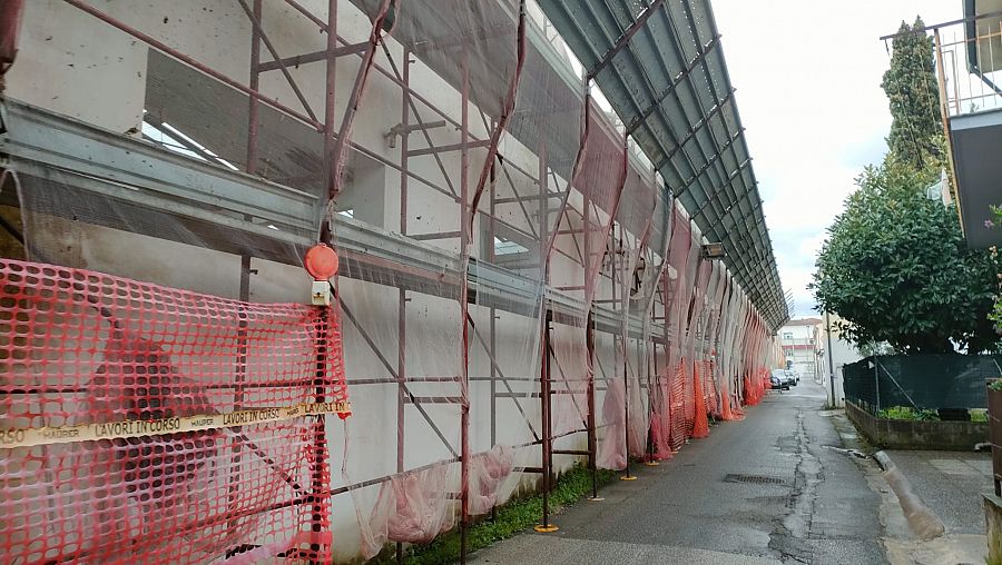 Quel che è evidente, al momento, è l'abbandono che circonda la zona del cantiere. Nell'area esterna alla struttura, cinta di impalcature, sono crescite le erbacce e le reti che dovrebbero delimitare l'area, complice anche il maltempo, sono divelte. Con la possibilità che qualcuno possa anche entrarvi.