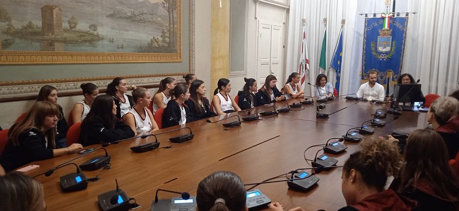 Ieri due squadre sono state accolte nella sala consiliare di Palazzo Stefanelli: il gruppo Senior che disputerà la serie B e la under 19, per un incontro con l'assessore allo sport Mattia Belli e la consigliera comunale Giovanna Caridi, membro della commissione sport. Per il club, insieme alle giocatrici, erano presenti lo staff dirigenziale guidato dalla presidente Simona Vivaldi, i quadri tecnici, e gli sponsor.
