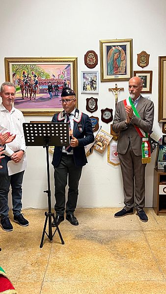 A seguire, i partecipanti si sono recati nella sede della sezione Anc per un momento solenne, durante il quale è avvenuto il cambio della bandiera italiana, simbolo di continuità e rinnovato impegno verso i valori fondanti dell’Arma.
