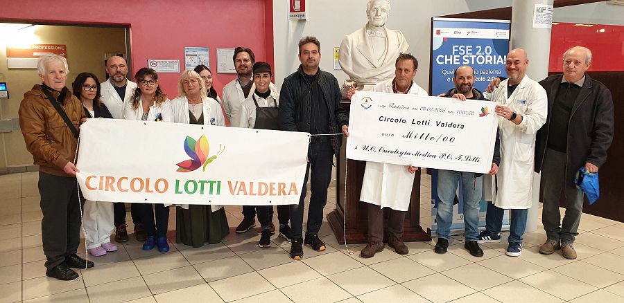 PONTEDERA — Solidarietà e attenzione in scena all'ospedale Lotti di Pontedera, dove alla Fondazione Faro, che coadiuva l'assistenza nel reparto di oncologia, è stato donato il ricavato di mille euro della lotteria di Natale 2025 organizzata dal Circolo "Lotti" Valdera, con il contributo della Primavori Assicurazioni, della caffetteria pasticceria Gori e del Bar Roma.