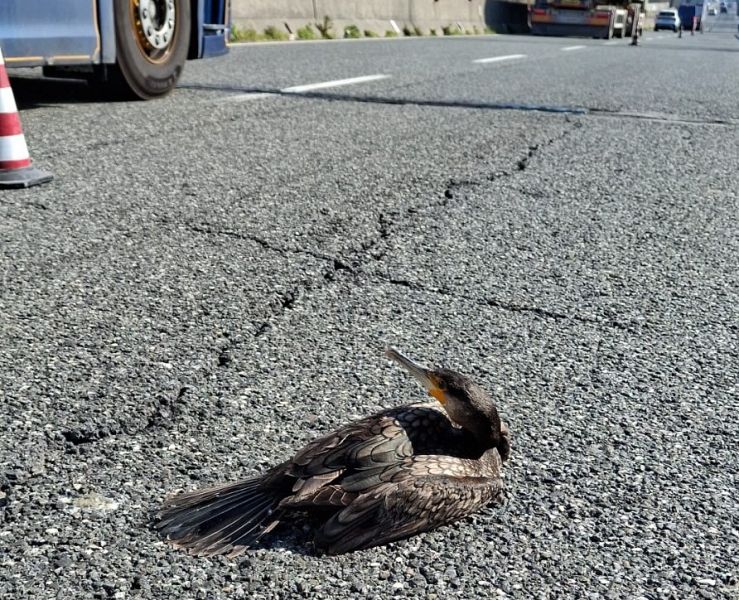 PONTEDERA — Avvistamento insolito, almeno per chi è abituato a vedere file e, purtroppo, incidenti. Lungo la FiPiLi, infatti, è spuntato un cormorano, che è fortunatamente atterrato nell'area di un cantiere.