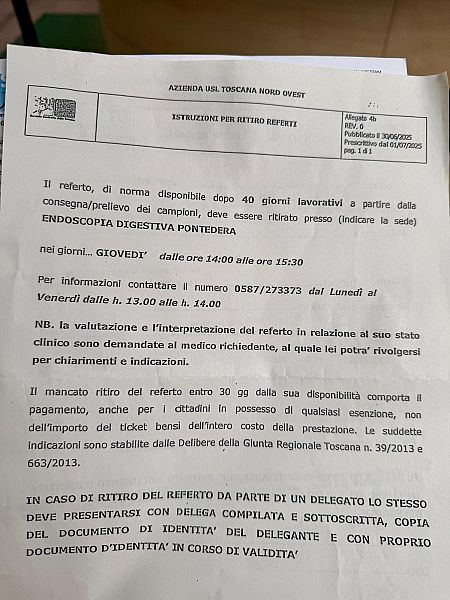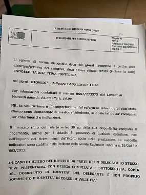PONTEDERA — Il ritiro di un referto diventa per un signore pontederese una corsa ad ostacoli. Dall’esame effettuato alla consegna del risultato, un’odissea. E non solo per i tempi di attesa che devono trascorrere prima della risposta ma anche per l’organizzazione nel momento del recupero dell’esito finale.