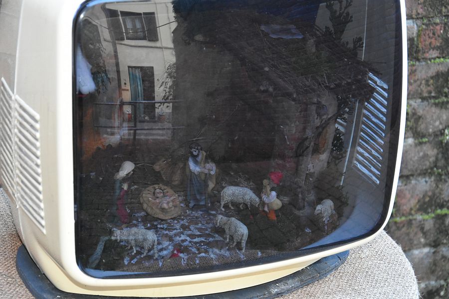 PONTEDERA — Spuntano dai vasi o dall’interno di vecchi televisori, posizionati su un muretto, sui balconi, sulle scale esterne delle case. Piccole e grandi Betlemmi appese ai muri, fatte a maglia o dipinte. Sono solo alcuni dei 108 presepi esposti a Montecastello, frazione di Pontedera. In media uno ogni quattro abitanti.