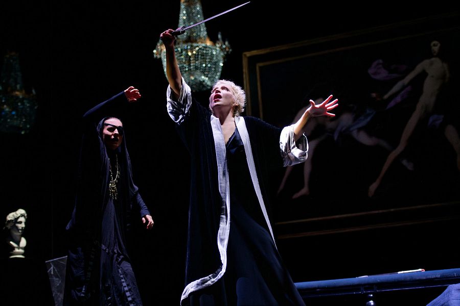 Protagonista in scena è Elena Ghiaurov, accompagnata da un ampio cast formato da Martino D’Amico, Valentina Elia, Riccardo Livermore, Catherine Bertoni de Laet, Bruna Rossi e Massimo Verdastro. Firmano la scenografia Franco Raggi e Gregorio Zurla, mentre i costumi sono di Giovanna Buzzi e le luci di Gianni Pollini; la cura del canto di Francesca Della Monica e i movimenti coreografici di Cristiana Morganti.