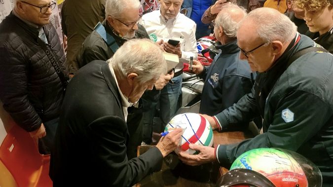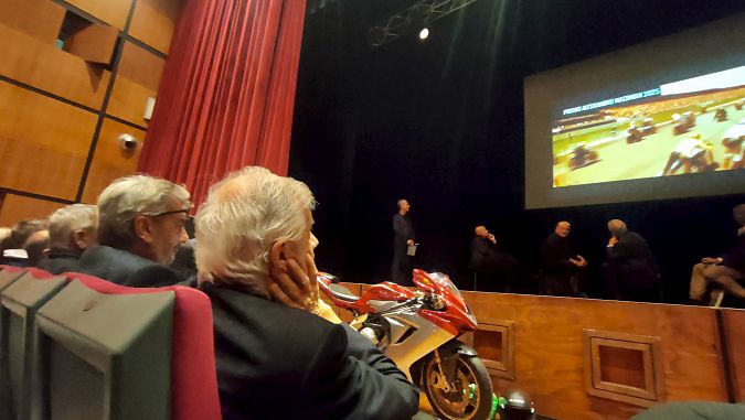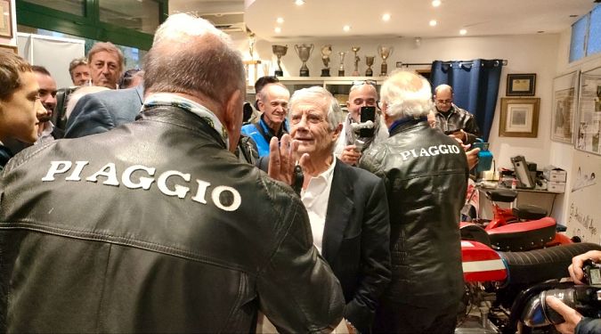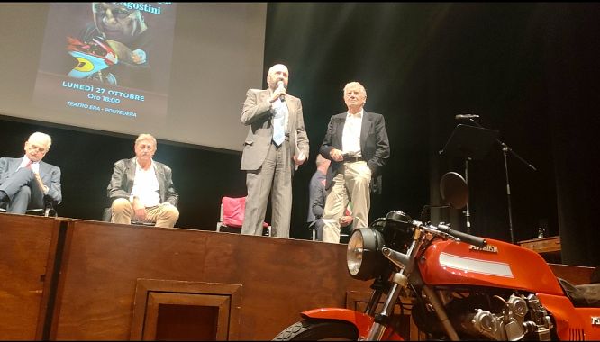 "Ago" ha poi raggiunto il Teatro Era accompagnato dal corteo di vespisti, per salire sul palco, di fronte ai figli di Sandro, David e Simone, per ritirare il Premio. Testimonianza non solo di una grande carriera in sella alle moto, ma anche di un'epopea che lo ha reso vera e propria icona dello sport italiano.