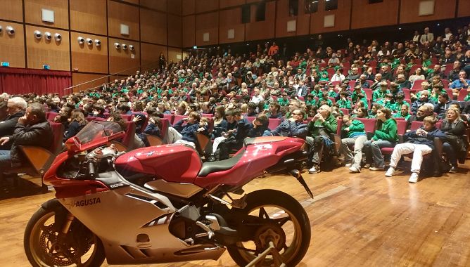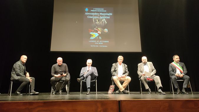 PONTEDERA — Da un campione all'altro, con la speranza di trovarne di nuovi tra i più giovani. Con questo spirito il Premio Sandro Mazzinghi, giunto alla quarta edizione, è stato consegnato a Giacomo Agostini, il pilota più vincente della storia. E, accanto a lui, un riconoscimento anche al Gruppo Sportivo Bellaria, che con i suoi giovani ha colorato di verde la platea del Teatro Era.