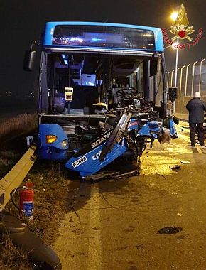 Per cause in corso di accertamento un’auto e un bus si sono scontrati e il conducente della vettura è deceduto. Si è appreso che la vittima è Gilberto Biasci, 32 anni.