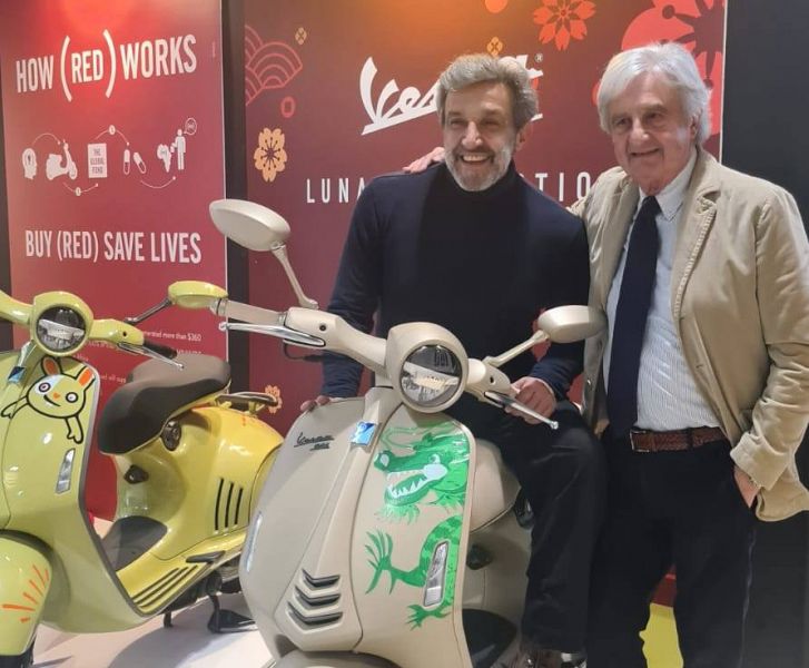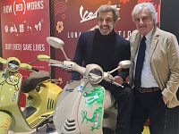 L'attore e conduttore, impegnato al Teatro Era, ha visitato anche il Museo Piaggio, salendo in sella a una Vespa. Visita speciale alla Rsa pontederese