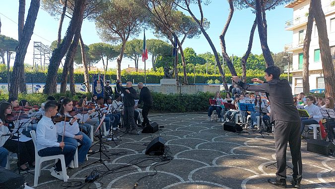 PONTEDERA — La musica dell'orchestra degli istituti comprensivi pontederesi ha accompagnato la celebrazione della festa della Liberazione, che come da tradizione si è tenuta in piazza Garibaldi, di fronte al monumento ai Caduti.