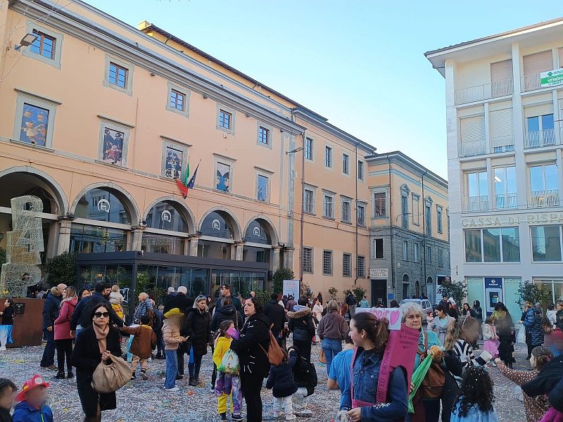 PONTEDERA — Un fiume di maschere allegre e colorate, giochi e musica hanno animato la giornata di martedì grasso a Pontedera, con un doppio appuntamento per festeggiare il Carnevale.