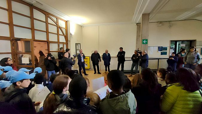 Proprio per questo, di fronte a sé Tomaino si è ritrovato un pubblico di bambini e bambine delle scuole pontederesi: un'invasione pacifica del palazzo comunale e di piazza Cavour, dove si trova una delle opere principali, "Comunità".