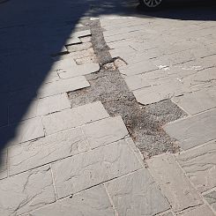 Domenico Pandolfi, della Lega Pontedera denuncia non solo una condizione di incuria ma una modalità di ripristino e intervento sull'urgenza mai risolutiva. "Le lastre in pietra, ormai rotte o smosse, non sopportano il passaggio delle auto, forse perché troppo sottili, e vengono riparate puntualmente con il cemento anziché essere sostituite. Uno scavo recente che attraversa la piazza - ha detto Pandolfi - ha completato il degrado, e i prossimi lavori di Acque rischiano di dare il colpo di grazia a un’opera pubblica che, di fatto, è durata troppo poco. Ciò che doveva essere un “recupero di uno spazio di socialità” si è trasformato in una vergogna. Per citare un titolo cinematografico, i cittadini pagano sempre due volte".
