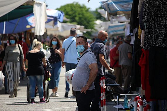 Entrate controllate, rispetto del distanziamento sociale, mascherine ma anche un assaggio di normalità con gli ambulanti tornati nella grande piazza