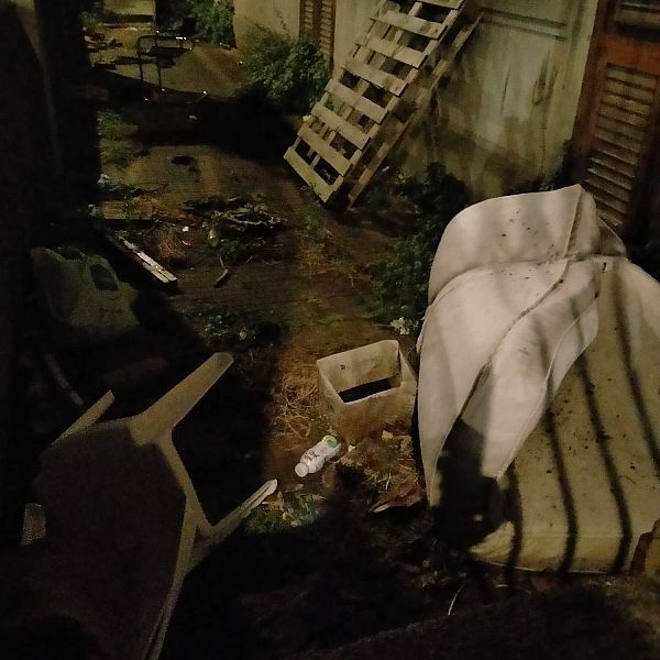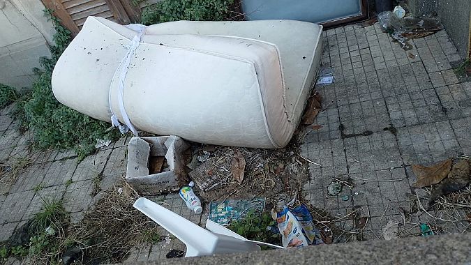 Da vecchi materassi a pancali, da sedie di plastica rotte e divelte a bottigliette di yougurt, da sacchetti a sporcizia varia sparsa tra l'erba incolta che spunta dall'asfalto.
