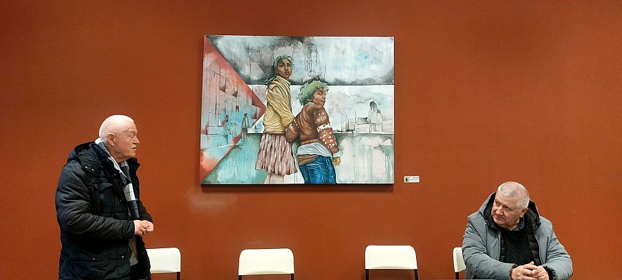“Nel quadro – ha detto Banchellini negli attimi prima del convegno - ho rappresentato due ragazzi palestinesi che rivolgono uno sguardo di speranza verso chiunque stia osservando la tela”. Un messaggio che aspira alla libertà e che calza a pennello con i dati presentati da Francesco Paletti, redattore del rapporto sulle povertà don Emanuele Morelli, direttore diocesano Caritas Pisa, Fabrizio Mariani, responsabile area marginalità della cooperativa Arnera e Carla Cocilova, vicesindaca di Pontedera con delega alle politiche sociali.