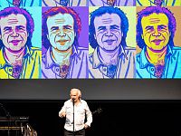 All’attore, dopo il saluto del Sindaco Matteo Franconi, omaggi del Vespa club di Pontedera ed un quadro con un suo ritratto realizzato dall'artista Pier Toffoletti, che ha esposto le sue opere nel foyer del Teatro.
