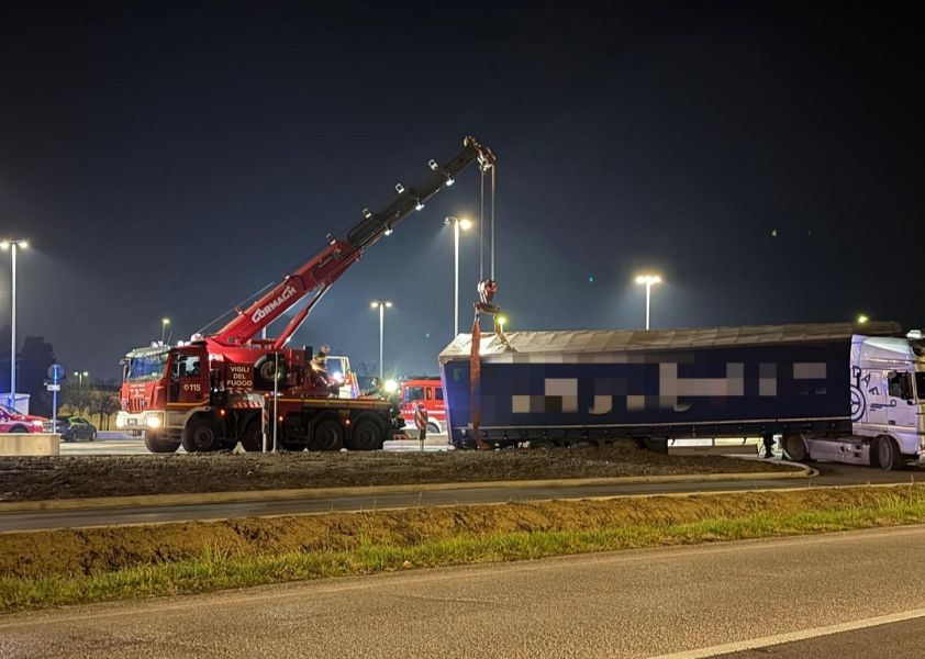 Il semirimorchio è rimasto bloccato ed è stato necessario l'impiego dell'autogru per liberare l'area: diversi gli automobilisti incuriositi