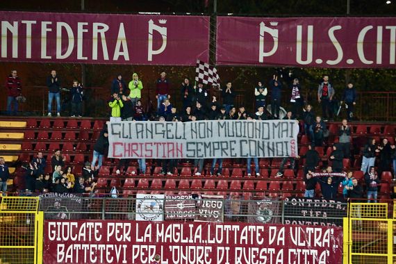Prima del fischio d’inizio, toccante momento in ricordo del piccolo Christian Picarella, con il Pontedera sceso in campo con il lutto al braccio per omaggiare la sua memoria. Dalla gradinata, oltre allo striscione per il giovanissimo tifoso, anche un tributo a Gastone Regoli, storico magazziniere scomparso nei giorni scorsi.