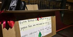 A una pensilina del terminal degli autobus è comparsa una scatola con vestiti, cibo e scarpe in regalo per regalare il calore del Natale