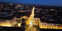 Le immagini della città dall'alto mostrano Corso Matteotti illuminato e le attrazioni natalizie come la Baita, i mercatini e il Christmas Park