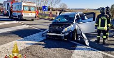 L'intervento nella prima mattinata sulla strada statale del Comprensorio: a seguito dello scontro i feriti sono stati trasportati al pronto soccorso