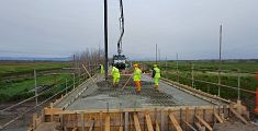 In corso gli interventi per completare la gettata sulla parte centrale della provinciale. Angori: "Operai al lavoro anche sabato e domenica"