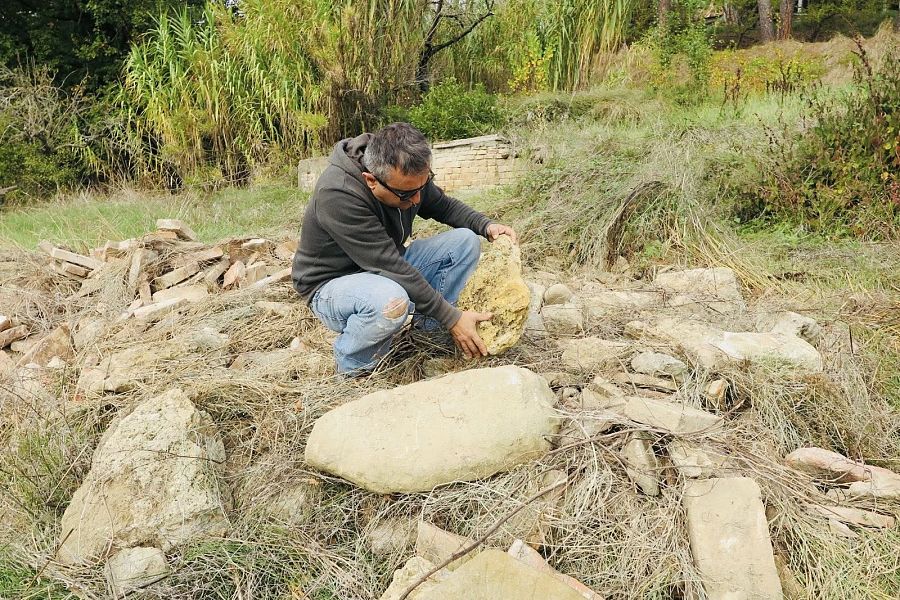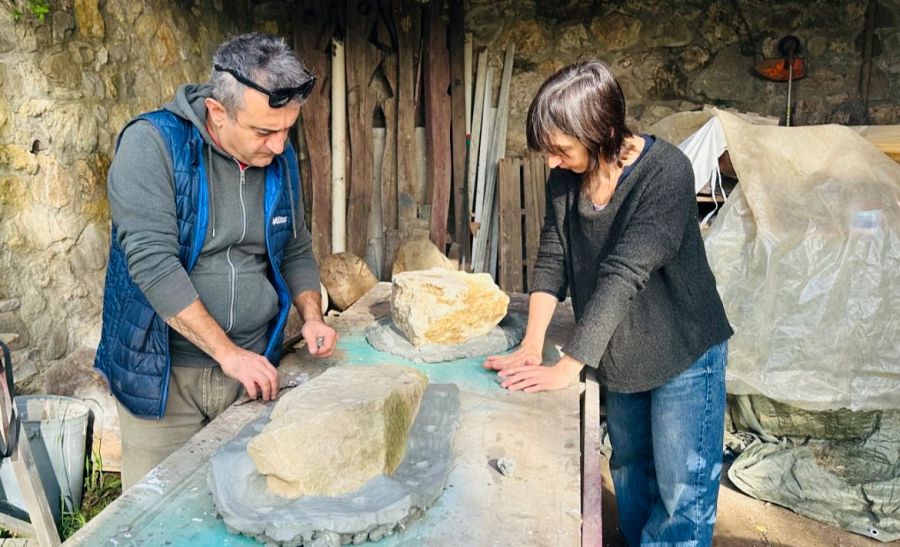 Il cuore del progetto è Lapidaria - iniziato dagli artisti nel 2020 - che indaga la relazione tra comunità e pietre, tra tempo umano e tempo geologico. Partendo dai cippi e dalle pietre di confine del passato etrusco, Sbrana e Mallegni hanno scelto rocce della campagna e del fiume Era in secca, realizzando calchi all’aperto per ottenere sculture in ceramica che fondono pietre locali e oggetti domestici. Un lavoro che restituisce il senso di un legame ancestrale, capace di attraversare geografie e epoche diverse. L'obiettivo è quello di valorizzare il territorio attraverso un dialogo tra arte contemporanea, archeologia e paesaggio, promuovendo una riflessione condivisa sull’identità culturale locale.